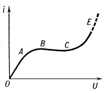 Рис. 1. Вольтамперная характеристика тихого разряда.