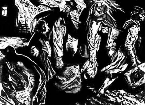 Р. Кальпо «Беженцы». Гравюра на дереве. 1942.