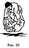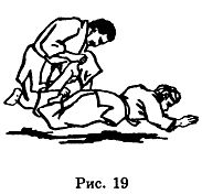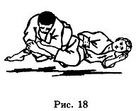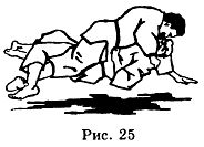 Действия рычага на коленные и тазобедренные суставы Укэ усиливаются, если Тори приподнимает верхнюю часть тела и отрывает затылок противника от пола (Рис. 25).