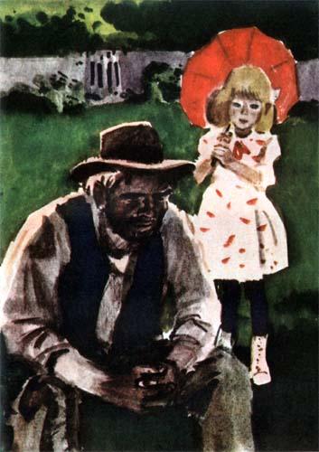 — А вот и нет! Мама никого не боится. Потому она и позволяет мне играть здесь одной, когда мне вздумается. Это что? Один раз к нам залез грабитель. Мама случайно встала и увидела его. И что же вы думаете! Это оказался просто бедный, голодный человек. Мама хорошенько накормила его, а потом нашла ему работу.