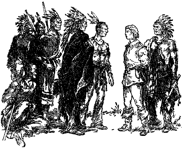 Ослабив путы на ногах пленника, они повели его к подножию утеса, где собрались остальные семинолы. С любопытством осмотрев мальчика, они отняли у него оружие, снова стянули ремнем ему ноги и бросили его в каноэ. Хотя Ренэ и успел заметить двух пленников-французов, но заговорить с ними ему не позволили.