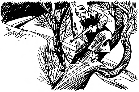 Видел я и другого охотника за «кукушками» — Аякса. Это крупная, отнюдь не приветливая овчарка. Аякс не выносит немецкой формы, серо-зелёная шинель приводит его в ярость. Кроме того, Аякс считает, что человеку не подобает сидеть на дереве. Для него самое большое удовольствие прочесать лес.