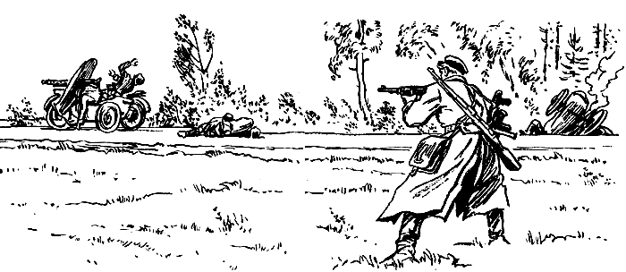В ту же минуту раздались винтовочные выстрелы на дороге – ребята открыли огонь.