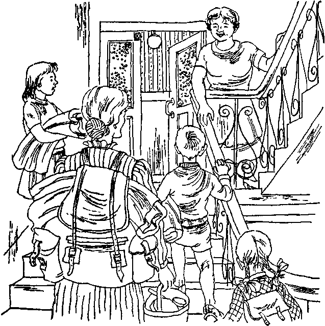 — Большое спасибо! — сказала мама, будто только что проснувшись. — Это так любезно с вашей стороны, только лучше мы сначала поднимемся к себе и немножко приведём себя в порядок, да и вещи надо отнести домой.