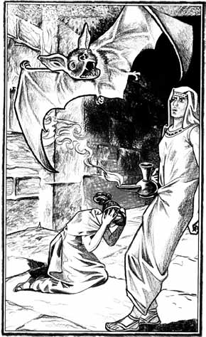 Оцепенев от ужаса, мы, едва держась на ногах, молча взирали на это омерзительное чудовище, а потом оно расправило свои гигантские крылья, разжало когти, выпустило подбородок евнуха и ринулось на нас. Зависнув в воздухе прямо перед лицом Клеопатры, обмахивая ее своими белыми крыльями, оно издало крик, похожий на гневный вопль разъяренной женщины, порхнуло в сторону своей оскверненной гробницы и исчезло в ведущем в склеп колодце. Я обессиленно прижался к стене, а Клеопатра упала на пол, накрыла голову руками и стала отчаянно кричать так, что не могла остановиться, и гулкие коридоры зазвенели от ее криков, эхо многократно множило и усиливало эти пронзительные звуки, и, казалось, стены расколются от хриплых отчаянных воплей.