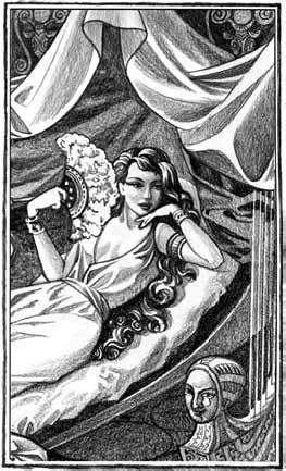 …Красота этой женщины была не тою, что зовется несравненною и поражает с первого взгляда, зато обращение ее отличалось неотразимою прелестью, и потому ее облик, сочетавшийся с редкою убедительностью речей, с огромным обаянием, сквозившим в каждом слове, в каждом движении, накрепко врезался в душу. Самые звуки ее голоса ласкали и радовали слух, а язык был точно многострунный инструмент, легко настраивающийся на любой лад, – на любое наречие, так что лишь с очень немногими варварами она говорила через переводчика, а чаще всего сама беседовала с чужеземцами – эфиопами, троглодитами, евреями, арабами, сирийцами, мидийцами, парфянами… Говорят, что она изучила и многие языки, тогда как цари, правившие до нее, не знали даже египетского, а некоторые забыли и македонский.