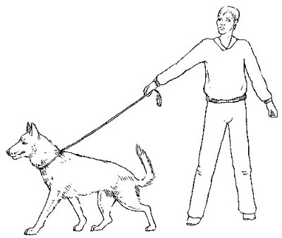 Итак, пристегните поводок и откройте дверь. Если собака начинает тянуть, тут же рваните поводок назад, чтобы он слегка провис. Особое значение при этом имеет сила рывка. Если она недостаточна, собака просто не обратит внимания на вашу воспитательную меру, но если очень велика, это может привести к страху или панике, что тоже плохо. Протестируйте свою собаку и себя и найдите оптимальный для обоих вариант. Если вам не хватает сил, используйте удавку или строгий ошейник, а если и это не помогает, сделайте не один рывок, а несколько.