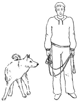 Довольно часто при прогулках на поводке мы с собакой можем оказаться по разные стороны столба, дерева или куста. Можно, конечно, самому обойти препятствие, но это не всегда удобно или возможно. Так что лучше заранее научить собаку правильному поведению. Для этого создайте прецедент и, как только поводок упрется в дерево, остановитесь. Сделав шаг вперед, вы окажетесь впереди собаки, и она будет стремиться к вам, т. е. вперед. Поэтому постойте немного. Если собака сама не сообразит, что в сложившейся ситуации необходимо вернуться назад, помогите ей. Отступите назад и подергиванием поводка заставьте собаку вернуться назад и обойти дерево с вашей стороны. При регулярной тренировке она рано или поздно поймет, как себя вести.