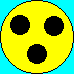 б) "Глухой водитель" - - вокруг желтого цвета диаметром 160 мм с нанесенными внутри тремя черными кружками диаметром 40 мм, расположенными по углам мысленного равностороннего треугольника, вершина которого направлена вниз. Знак размещается впереди и сзади на транспортных средствах, которыми управляют глухие или глухонемые водители;
