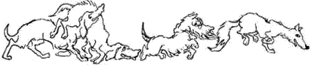 Ну, ничего, мы постараемся не повредить этих славных коняшек. Сейчас мы будем играть в Настоящую Свору. Тэгс бежит впереди, а мы бежим за ним. Все вместе. Никто не отстает и не виляет по сторонам. Тэгс пронесся под самым носом у Тэффи. Мы хором крикнули. Это был грозный и впечатляющий крик. Потом мы рванули вперед. Ох, как мы бежали. Мы орали на ходу Песни Охотничьих Гончих. Вот бы спеть их Эдар как-нибудь ночью. Уж тогда она наверняка залезла бы с головой под одеяло.
