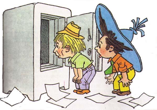 Сказав это. Козлик вошёл в контору и заглянул в комнату, где стоял несгораемый шкаф. Его удивило то, что тяжёлая железная дверь шкафа была приоткрыта. Одним прыжком подскочив к шкафу. Козлик заглянул в него и увидел, что внутри было пусто.