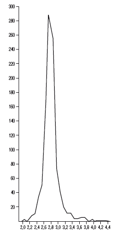 Рис. 23. Весовая диаграмма целых монет Шумиловского клада 871 г. По 995 экз. Новгородского музея