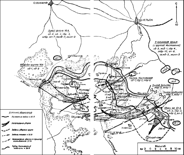Тем временем 16-я армия, атакуя навстречу 61-й и 3-й танковой с рубежа Гретня, Кричина в направлении Озерны, Никитское, Отвершек, выйти на рубеж Старица, Дубна, Панево, должна была не допустить отхода противника на юг и содействовать замыканию кольца окружения.