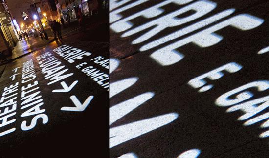 По сути, перед нами интеллектуальная система освещения, синхронизированная со светофорами. Светящиеся надписи на дорогах информируют пешеходов о безопасности перехода, сообщают названия улиц заблудившимся, а также выводят на асфальте рекламные анонсы находящихся поблизости заведений. Всё очень информативно и красиво.