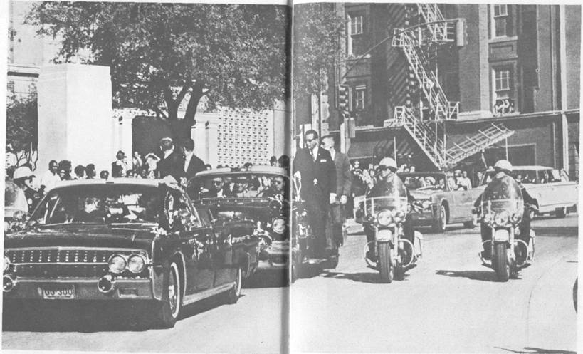 Президентский лимузин на Элм-стрит. На подножках автомобиля агенты секретной службы, за рулем агент секретной службы У Грир слева от него его начальник Р. Келлерман. Телохранители президента проявили загадочную халатность (см. с. 111–112).