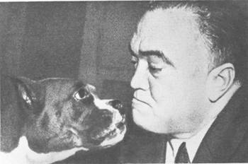 Другой не менее видный создатель версии об отсутствии какого-либо заговора против президента Кеннеди — директор ФБР Эдгар Гувер со своим любимым бульдогом Эдгаром. Босс тайной охранки водил знакомство с представителями преступного мира, которые подозреваются в соучастии в заговоре с целью убийства Кеннеди (см. с. 178).