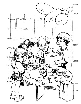 Ход игры: воспитатель просит ребят занять свои места и внимательно послушать стихотворение «Что взяла, клади на место!». Затем интересуется у малышей, что же случилось с девочкой Олей. Можно ли ей помочь и как это сделать.