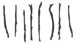 Жасмин, глубоко задумавшись, смотрела на прутики. Затем она присела на корточки. Из-за ее спины Лиф и Барда не видели, что она делает. Когда девочка встала и шагнула в сторону, на земле по-прежнему лежали восемь палочек, но теперь они составляли слово «ТРИ».
