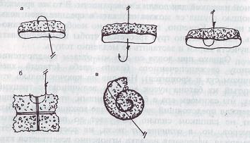 Рис. 9 Способы насаживания хлебной корки на крючок