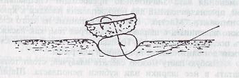 Довольно популярны среди карпятников сочетания различных паст с хлебной коркой. Популярны они и среди карпов. Корка компенсирует вес пасты и не дает ей погружаться в мягкий донный ил (рис. 10). Жало и изгиб крючка спрятаны в корке, паста расположена вокруг цевья. Соотношение размеров корки и шарика пасты определяется заранее экспериментальным путем. Готовая насадка вместе с крючком должна медленно-медленно погружаться в воду.