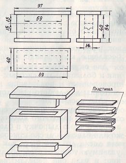 Все это у вас прекрасно получится. А чтобы изготовить штамп (рис. 18), наверняка придется прибегнуть к помощи слесаря. Обязательное для штампа условие — размеры окошка в нем должны точно соответствовать размерам формочки, в которой вы гипсовали блесну.