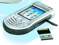 На первый взгляд аппарат мне понравился, впрочем, на второй и дальнейшие тоже. И не мне одному. Хотя многие недоумевали, зачем нижняя часть трубки сделана столь грузной на вид. Впрочем, на неудобство работы с устройством никто не жаловался, то есть глазам страшно, но руки справляются. С приходом Nokia 6260 было показалось, что финны пошли на сделку с совестью и решились внедрить в смартфонах вспомогательные кнопки по бокам корпуса. Пустое: инженеры концерна верны себе и заветам предков. Регулятор громкости и кнопка вызова камеры в 6260, похоже, - происки врагов или чьи-то шалости. В 6630 вместо этого полета фантазии лишь кнопка голосового набора (она же включает громкую связь, даже не диктофон) на левом ребре. В оппозицию ей поставлены клавиша включения/выключения и слот для RS-MMC с настоящей (впервые) горячей заменой карт памяти. Но каких?! В апреле прошлого года корпорация Samsung сообщила о выпуске ряда носителей информации стандарта DV (Dual Voltage) RS-MMC емкостью до 256 Мбайт, напряжением питания 1,8 В (вместо привычных трех) и с пониженным энергопотреблением. Эти модули могут работать в стандартных трехвольтовых считывающих устройствах, а вот использовать карты на 3,3 В в разъемах, рассчитанных на RS-MMC DV, нельзя. Я до последнего уповал на то, что Nokia 6630 достался, так сказать, двухдиапазонный модуль. Правда, фраза из английской версии инструкции «This device uses Reduced Size Dual Voltage (1.8/3V) MultiMediaCard (MMC)» уверенности не вселяла. Окончательно перечеркнула мои надежды Татьяна (сотрудница салона связи, из которого я повадился забирать аппараты), сказав, что лично убедилась в непригодности к употреблению обычных RS-MMC в 6630. Таким образом, владелец мобильного терминала попадает в зависимость от дефицитного и дорогого аксессуара. Карта предельной для RS-MMC DV емкости 256 Мбайт стоит в Москве 45 долларов, а RS-MMC того же объема - 25-30. Встроенной памяти, разумеется, мало - 10 Мбайт, так уж заведено, оперативной - 16 Мбайт. Формально немного, но вряд ли кто-то набьет под завязку даже такой объем: подобным смартфонам 16 Мбайт по-прежнему достаточно. Возвращаясь к теме карт RS-MMC DV, отмечу, что Nokia 6630 - ярчайший пример того, как техника расплачивается за энергонезависимость памятью.