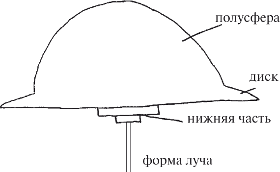 Рис. 1. Форма НЛО, зависавшего в ночь на 29 июля 1989 года на высоте примерно 20 метров над складом ракетного вооружения в районе города Капустин Яр. Рисунок прапорщика В. Н. Волошина.