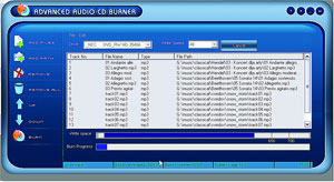 С помощью Advanced audio cd burner можно создавать звуковые компакт-диски несколькими кликами мышки: надо лишь перетащить аудиофайлы в окно программы и нажать кнопку записи. Программа понимает популярные форматы MP3, WAV, WMA, OGG, умеет стирать CD-RW. Поддерживается дозапись дисков.