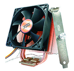 Одна из особенностей кулера Katana – наклон на 20 градусов относительно вертикальной оси, что дает возможность направить дополнительный поток воздуха на материнскую плату. Специальное крепление позволяет монтировать устройство в четырех положениях для оптимального использования мощности вентилятора в пространстве корпуса (для сокетов 370/462 возможны лишь два положения). Радиатор изготовлен из меди. Благодаря прилагаемому реостату можно изменять скорость вращения вентилятора от 1200 до 2500 об./мин., тем самым выбирая желаемое отношение шум/производительность.