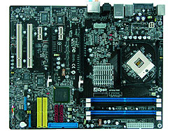 Плата форм-фактора АТХ поддерживает процессоры Intel семейства Core Duо, а также технологию ATI Crossfire; разъемы PCI Express можно использовать и как один графический слот x16, и как два x8. Новинка позволяет поднимать частоту шины до 1 ГГц, благодаря чему, учитывая разгонный потенциал процессоров на ядре Yonah, на нее можно ставить модули памяти DDRII 800. Разгонять шину (с шагом 1 МГц) можно с пульта, входящего в комплект. Кроме того, он позволяет управлять функциями DVD и MP3, а также включать и выключать компьютер. Скорость вращения кулера изменяется автоматически в зависимости от степени разгона.