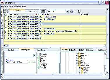 PDF Explorer предназначен для работы с большим количеством файлов формата PDF. Утилита создает базу PDF-документов, что упрощает и ускоряет дальнейшие действия с ними. Она умеет извлекать картинки или отдельные страницы, склеивать разные файлы в один документ, редактировать поля Info. Поиск можно вести как по отдельному файлу или всей базе, так и по избранным документам. Почти все операции могут быть запущены в пакетном режиме.