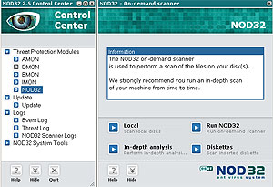 Ныне, полгода спустя, с чистой совестью и превеликим удовольствием представляю читателям удивительнейшее создание – NOD32 (рис. 1)! Волею судеб антивирусная программа стала первой софтиной в моей жизни: случилось это в 1992 году, если не изменяет память – на AT286 с 1 мегабайтом памяти, 20 мегабайтами жесткого диска и дисководом 5,25 дюйма. Называлось чудо Adinf (кажется, так), торчало в autoexec.bat и отлавливало заразу практически после каждого (!) втыкания постороннего флоппи-диска. В особо криминальных масштабах грешило против софтверно-половой гигиены почему-то бухгалтерское племя, таранящее из офиса в офис свои «ОднаЭсы», ну и – куда ж без них! – секретарши с неухоженными «Лексиконами» и едва только поднимающей голову гидрой MS Word v.1 for DOS.
