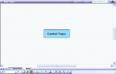 Как я уже сказал, MindManager не графический редактор интеллект-карт, а рациональный конструктор. Однако именно эта рациональность позволяет приступить к работе с места в карьер. Судите сами. При запуске программы на экране автоматически появляется графический топик центральной идеи, уже заполненный текстом по умолчанию. Как вы догадываетесь, текст этот совершенно бессмыслен и неприемлем – Central Topic. Если бы разработчики MindManager пошли традиционным путем, процедура составления интеллект-карт быстро бы превратилась в невыносимо тоскливую и затяжную рутину. По этой логике нам нужно было совершить клик мыши внутри графического топика на тексте (по аналогии с, например, MS Word), затем выделить весь текст (двойной клик мыши) и набить новый. Долго, нудно, непродуктивно, хотя и вполне традиционно. В MindManager эта задача решается нетривиально: вы глядите на экран с графическим топиком Central Topic и… начинаете формулировать главную идею интеллект-карты, ни о чем не задумываясь: ни о выборе места для впечатывания текста, ни о текущем положении курсора, ни об удалении текста по умолчанию (того самого Central Topic). Все вышеперечисленные задачи выполняются автоматически и одновременно, так что вы можете целиком сосредоточиться не на интерфейсе и компьютерной реализации, а над содержанием собственной мысли и, как следствие, всей последующей интеллект-карты (рис. 2, 3).