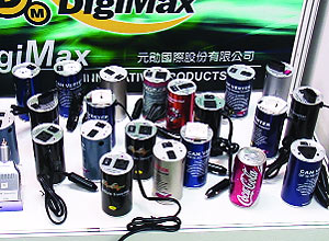 На одном из стендов обнаруживаю нестройный ряд банок типа кока-колы, но каждая с проводом. Оказывается, это преобразователь с 12 В автомобильной бортсети на 110/220. На вопрос «А зачем?..» получаю вполне резонный ответ: «А чтобы по салону не болтался, в подстаканник удобно ставить».