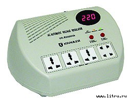 Неплохой способ избавить свой ПК от некачественного электропитания. Входной диапазон напряжений 160-250 В, выходное напряжение 230 В встроенный сетевой фильтр, защита от молний, защита телефонной линии, защита от перегрева и перегрузки самого стабилизатора. Светодиодный индикатор показывает текущее напряжение в сети и режимы работы стабилизатора. Отличаются модели только мощностью — первая рассчитана на 1200 ВА (умеренная нагрузка вроде пары маломощных компьютеров или мощного компьютера с принтером и сканером), вторая на 2000 ВА (если нужно использовать лазерные принтеры и мощную бытовую технику типа СВЧ-печи). Цена — Krauler VR-R1200VA-$30, VR-R2000VA-$50.