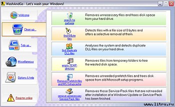 Как и одноименный шампунь, программа вычистит до блеска даже самый «грязный» жесткий диск. Приложение освобождает дисковое пространство, удаляя массу цифрового мусора, накапливающегося в процессе работы на компьютере: временные или пустые файлы, дубликаты библиотек, кэш популярных браузеров (Internet Explorer, Opera, Firefox), неверные ярлыки, нарушенные ключи реестра и т.д. Дополняют картину удобство настроек, система автоматической очистки и возможность сохранения на определенный срок резервной копии удаленных данных. Дабы случайно не отправить в мир иной важные данные, всю информацию о пригодных к удалению файлах WashAndGo предоставляет в наглядном виде.
