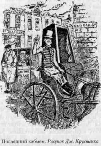 Представьте себе обычную неуклюжую тряскую карету лондонского извозчика старой школы — найдется ли смельчак, который станет утверждать, что встречал где-либо на свете нечто, на нее похожее — если только, разумеется, это не была другая карета тех же времен. Увы! Как ни грустно говорить об этом, в последнее время все чаще и чаще можно увидеть на стоянке какую-нибудь щеголеватую зеленую коляску или желтую лакированную карету, у которых все четыре колеса выкрашены под цвет кузова, хотя всякому, кто серьезно занимался изучением этого вопроса, хорошо известно, что колеса должны быть все разного цвета и разной величины. Подобные новшества, равно как и другие так называемые усовершенствования, лишь говорят о пагубном брожении умов, наблюдающемся в обществе, и о том, что мы разучились уважать наши освященные веками установления. Зачем, спрашивается, извозчичьим каретам чистота? Наши предки ездили в грязных и не жаловались. И почему это мы, будучи одержимы духом беспокойства, непременно желаем трястись по мостовой со скоростью шести миль в час, тогда как они довольствовались четырьмя? Все это веские соображения. Извозчичьи кареты — плоть от плоти и кость от кости нашего правопорядка; закон их утвердил, и парламентская мудрость снабдила номерными знаками.