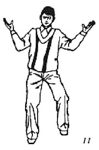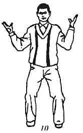 4. Используя локти в качестве «осей», разведите кисти по дуге в стороны ладонями под углом кверху (рис. 10).