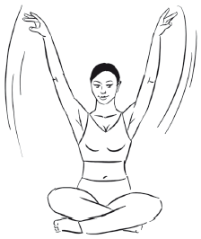 Сядьте прямо, ноги согнуты в коленях и скрещены перед собой. Левая рука согнута в локтевом суставе и ладонью и предплечьем прижата к полу. Правая рука вытянута вверх, ладонь внутренней стороной направлена влево.