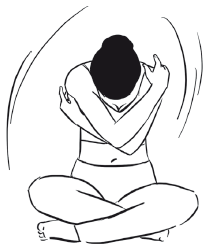 Наклоняя голову вниз и максимально округляя спину, одновременно опустите руки через стороны и, скрещивая их перед грудью, обхватите себя за плечи.