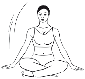 Сядьте прямо, ноги согнуты в коленях и скрещены перед собой, упор руками в пол. Голову держать прямо, подбородок не опускать.