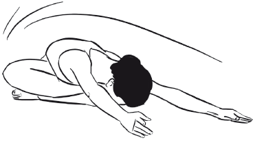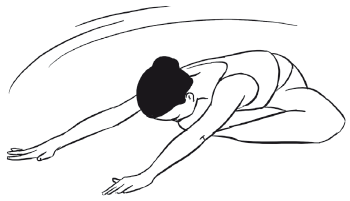 Продолжая движение по кругу и не поднимая туловище вверх, снова плавно переведите руки и корпус еще на 45° – наклон вперед-вправо, также потянитесь за руками. Почувствуйте растяжение мышц спины и ягодиц. Задержитесь в этом положении на 10–12 счетов. Расслабьтесь.