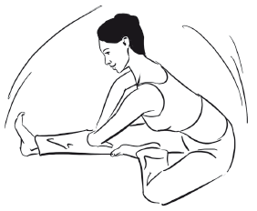 Внимание! Голова, шея и спина должны составлять одну прямую линию, колено выпрямленной ноги не сгибать. Чтобы усилить растягивающий эффект, максимально оттягивайте носок стопы на себя.