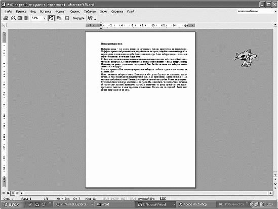 Здесь вы увидите ваш документ в таком виде, в каком вам напечатает ваш принтер. Заодно сэкономите бумагу и время, так как в окне предварительного просмотра вы сможете увидеть все недостатки вашего документа и сразу же все исправить, не доводя дело до принтера.