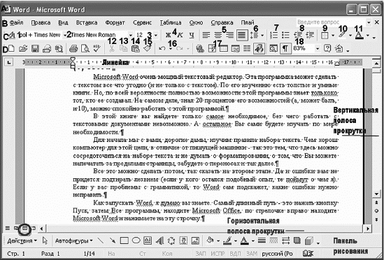 Под строкой меню находятся панели инструментов. В данном случае мы видим панель форматирования (на рисунке строка С) и стандартную панель (на рисунке строка D). Если вы вдруг с ужасом обнаружите, что пропала панель форматирования (или стандартная, или обе сразу), а что делать дальше вы не знаете, то расскажем вам по секрету, что вы сами можете добавлять новые и прятать ненужные панели.