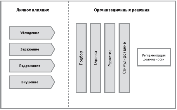 В рамках формирования организационной культуры мы не рассматриваем индивидуальный уровень формирования ценностей, на котором ценности формируются в ходе взаимодействия психологической сущности человека и влияний внешней среды. Эта тема требует отдельного рассмотрения. Наша задача – найти организационные решения.