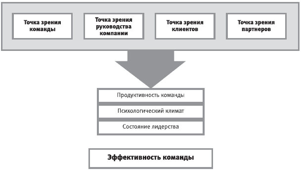 1) определить ключевых заинтересованных лиц, точки зрения которых в своей совокупности дадут информацию об эффективности команды;