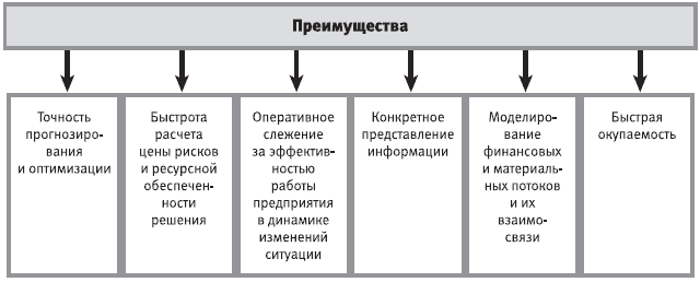 Менеджеры видят текущую ситуацию во внутренней и внешней среде предприятия в динамике, максимально точно просчитывают сценарии ее развития в зависимости от множества вносимых изменений. За счет быстрого поиска в многомерном пространстве факторов и ограничений менеджер получает лучшие решения из возможных вариантов в каждой конкретной ситуации (эффект «золотой середины»).