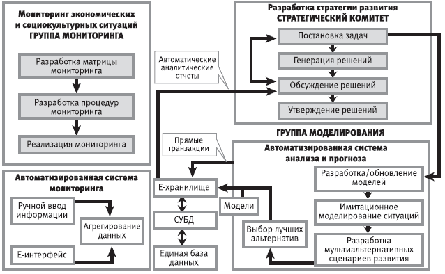 Возникает возможность реализации мониторинга экономических и социокультурных ситуаций – системы постоянного слежения и заданной автоматической индикации отклонений «план-факт» по ключевым факторам успеха.