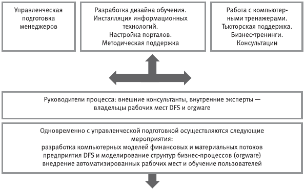 Наличие мощных информационных технологий позволяет реализовать амбициозный проект создания в компании нового качества управления, основанного на упреждающем управлении организационными изменениями на базе моделирования. По сути, речь идет о создании интегрированной динамичной среды управления и обучения. Такая задача особенно актуальна для российских предприятий, отличающихся, с одной стороны, колоссальными темпами изменений и, с другой стороны, дефицитом необходимых организационных компетенций персонала и отсутствием необходимого опыта. Ситуация большинства крупных растущих компаний требует быстрого (и часто – одновременного) решения следующих сложных задач: